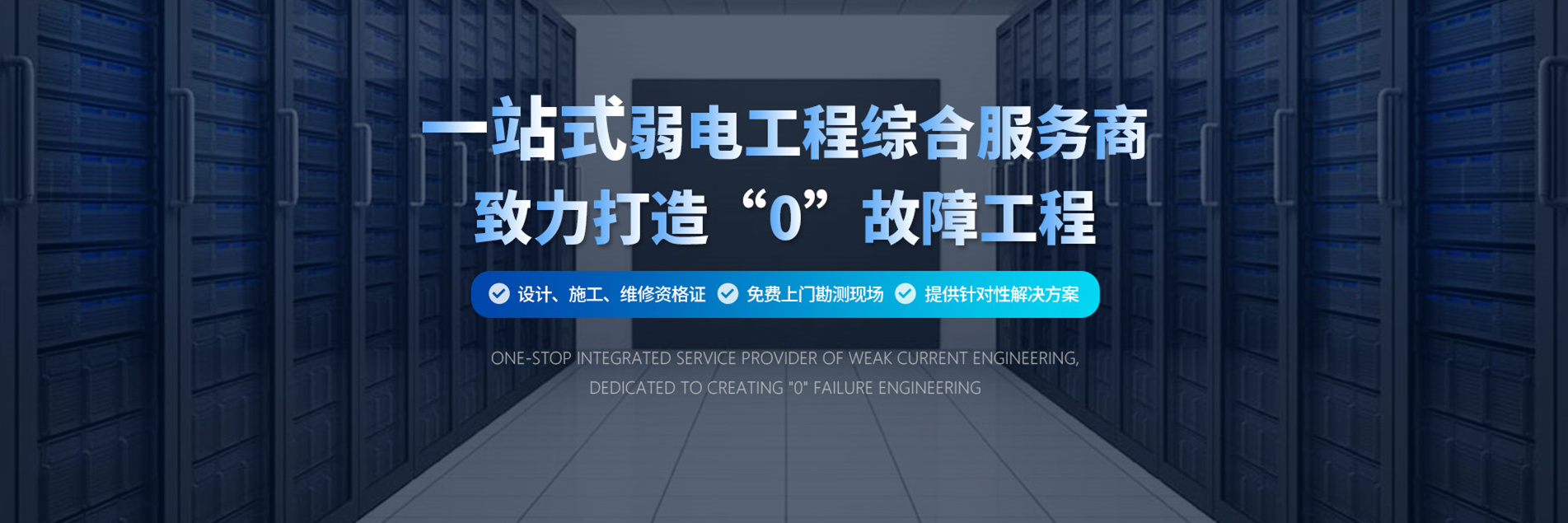 12年耕耘,實力深厚:擁有電子與智能化網絡工程級承包二級資質及安防監(jiān)控資質; 具備大、中型網絡工程、安防監(jiān)控、綜合布線、弱電工程等項目的設計、實施及管理經驗,能夠為客戶提供完整的網絡機房工程解決方案以及弱電維保服務。